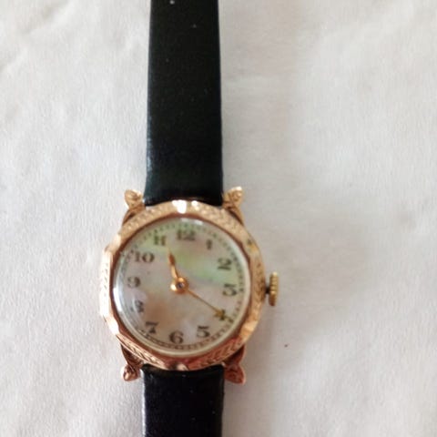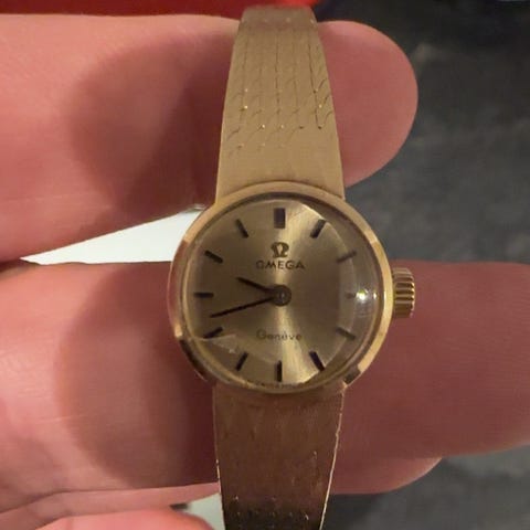 Omega dameklokke i gull vurderes solgt. Analog urskive med klassisk design. Vekt 26g.