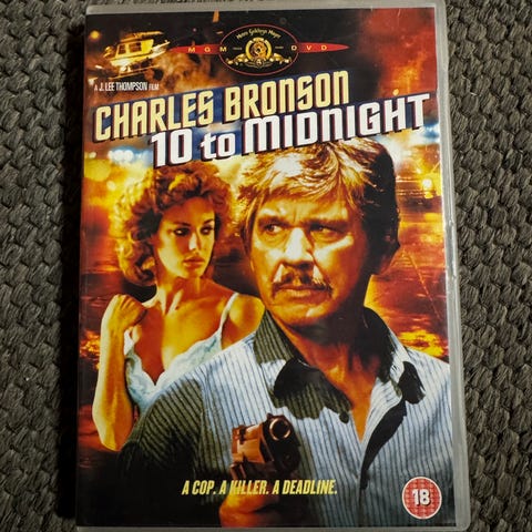 DVD med filmen Charles Bronson 10 to Midnight. Inneholder filmen med handling rundt en politietterforsker og en morder.