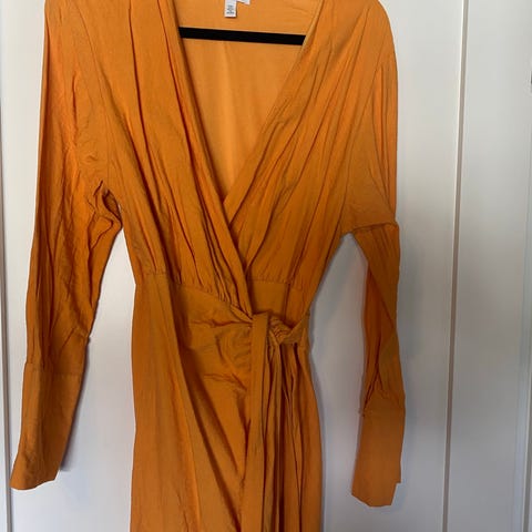 H&M hverdagskjole i størrelse S, laget av linmateriale. Kjolen har en rød farge og er designet for kvinner. Passer til hverdagsbruk.