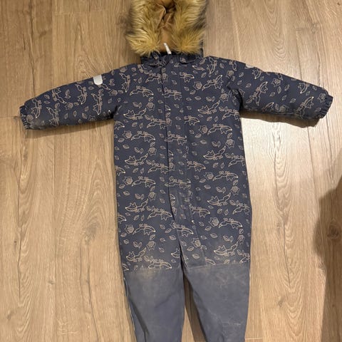 Denne er ikke så tykk i foret. Ikke for de ekstra kalde vinterdagene. Dressen har ikke slitasje. Men mangler en reim for og ha under sko.
