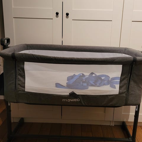 Moweo Bedside crib veldig pent brukt, selges da baby ikke bruker den mer. Ny pris 1799kr. Har sengekanten også hvis det er ønskelig. Kan selge samlet for 1500kr
