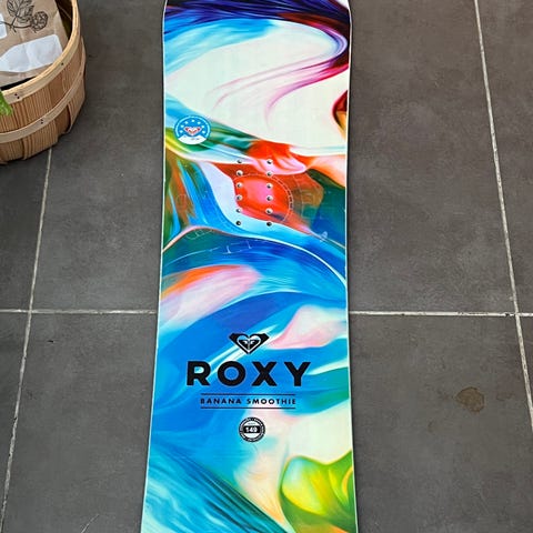 Artic One snowboard til salgs, 142cm. Bindinger medfølger. Brettet er 142cm langt, så det passer typisk best for folk 150-170cm. Elegant design med friske farger og sommerfugler. Litt samme stil som Kari Traa. Norsk snowboard, bygget i Østerrike. Se ellers bildene for detaljer.