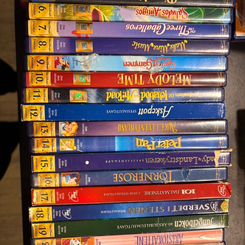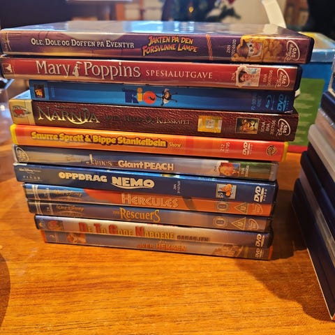 Selger min Disney samling- dvd og blueray. Alle blueray er usett, samt det meste av dvdene. Alt er veldig pent brukt. Kan selges mot at kjøper betaler frakt. 😊selges samlet til 800 kr 😊 men er åpen for bud hvis budet er interessant.