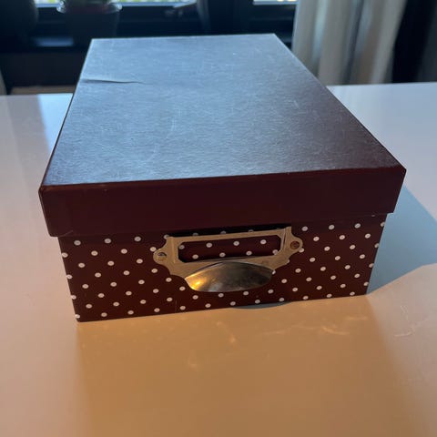 Adlibris bokeske i papp, rød farge. Egnet for oppbevaring eller forsendelse av bøker.