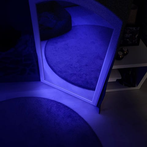 Rundt speil med knagg.