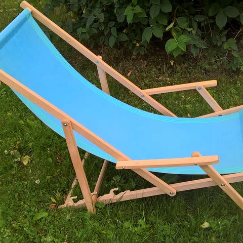 En lysebrun og en hvit sammenbrettbare strand stoler, meget gode å sitte i, lette å bære med seg og veldig god kvalitet. Nypris 3049 pr stk