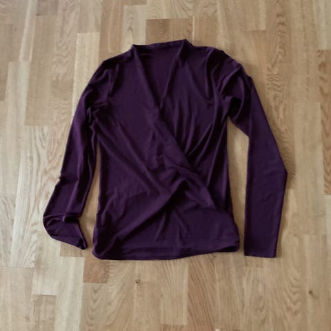 Burgunderfarget genser/topp fra norske designer Mette Møller. Den er i str 38, men klærne er litt små i størrelse. Det er bred livdel nederst og båthals for å kunne dra den litt over skuldrene for de som vil. Lite brukt siden passformen ikke helt var meg.