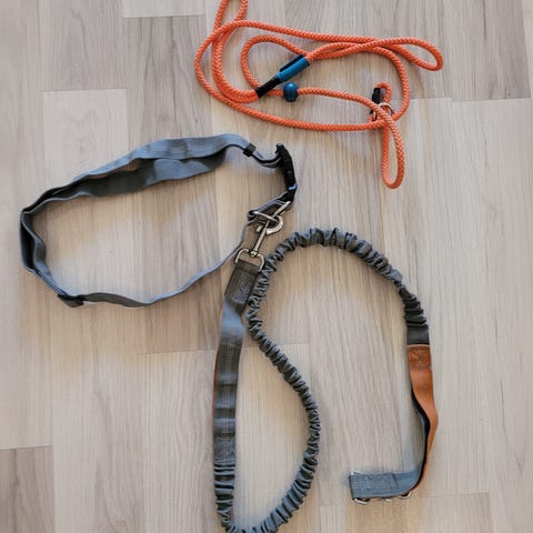 Ubrukt hundebånd, elastisk med kok til å feste å belte e.l.