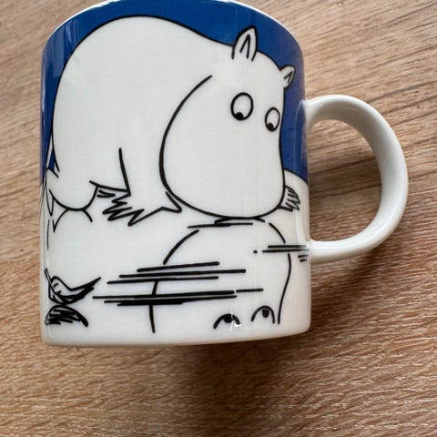 Arabia Mummikopp 3dl «Tufsla og Vifsla» selges. Koppen ble produsert i perioden 2005-2017