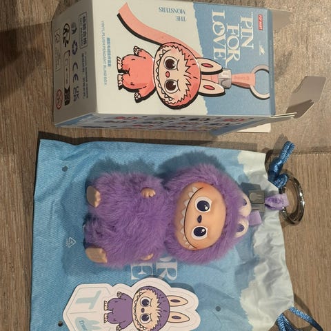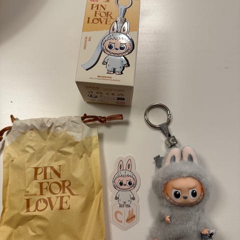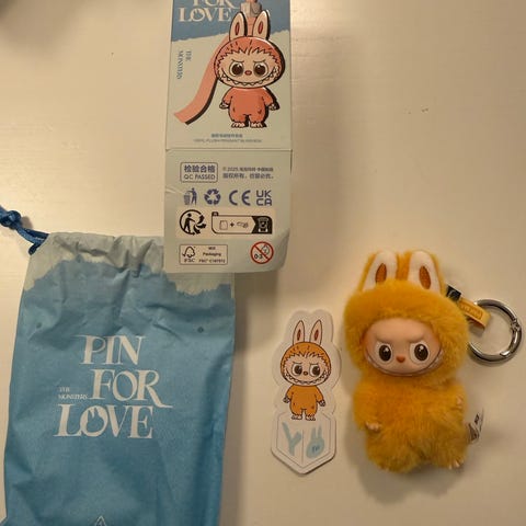 Labubu Pin for Love A-M (gul ), N-Z( blå) - selges enkeltvis, blind box=ekte samleropplevelse , 100% ekte med QR kode.