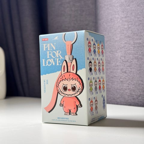 POP MART Pin for Love samlerfigurer i assorterte farger. Figurenes design inkluderer ulike karakterer med kaninlignende hetter. Produktene leveres i individuelle esker med illustrasjoner og informasjon på flere språk. Passer til samling eller dekorasjon.