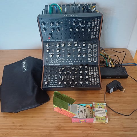 Jeg skalerer ned for å få plass til mer ren eurorack på bordet, så dermed legges denne ut for salg. Kun 3 måneder gammel og i forebilledlig skikk. Eske, kvitteringer, eurorack-kabler og alt slik følger med. Kan sende, selv om selvhent vel er mer praktisk.