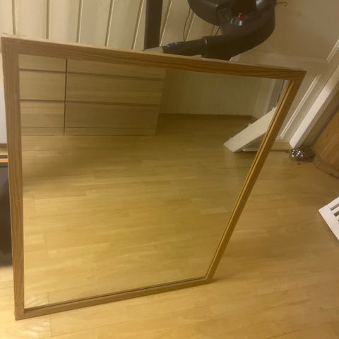 Stort, flott og tungt speil selges. Noen bruksmerker. 95x116,5 cm. Må hentes