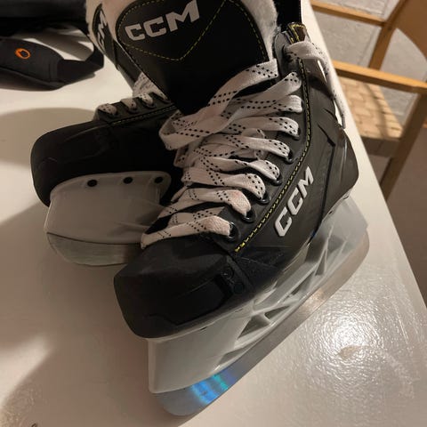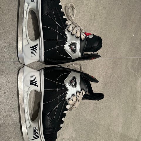 CCM Ishockeyskøyter i størrelse 38 for barn. Skøytene har svart farge. Noe rust rundt hullene til lissene, ellers uten anmerkninger.