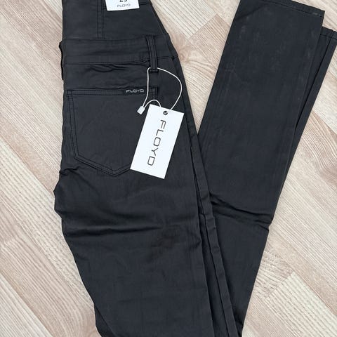 Selger denne helt nye “skinnbukse” i str 38. 2 stikk lommer foran og 2 fake lommer bak. Med strikk og belte i livet