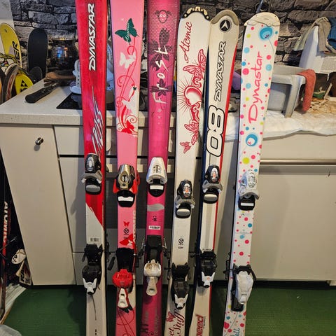 Völkl slalomski 138 cm med bindinger. Selges billig da de er synlig brukt med riper. Må hentes i Asker.