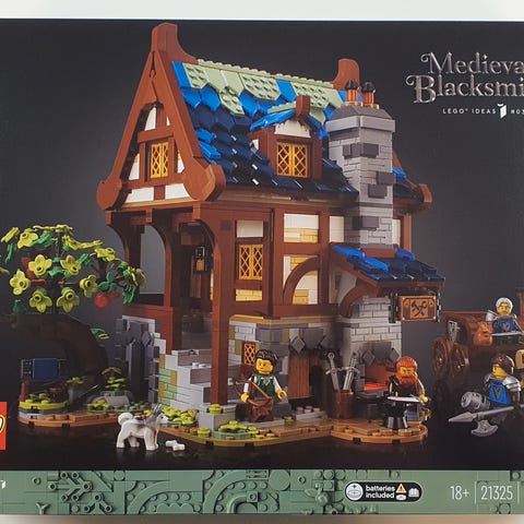 LEGO Ideas The Medieval Blacksmith 21325 byggesett med detaljerte figurer og bygningselementer. Passer for samlere og byggere som er interessert i middelaldertema. Settet inkluderer flere minifigurer og tilbehør for å skape en autentisk middelalderverkstedopplevelse.