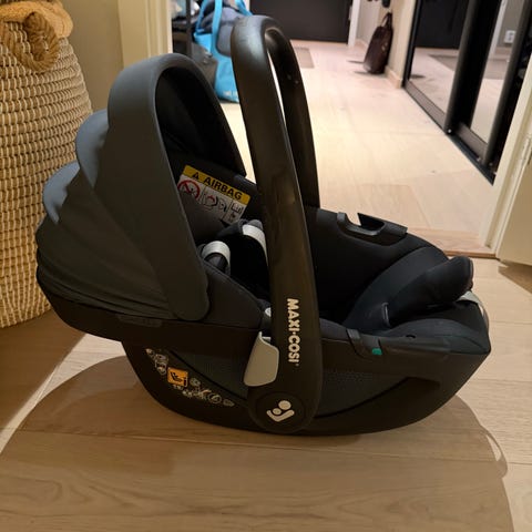 Selger pent brukt Maxi-Cosi Pebble 360 bilsete og base til baby. Kjøpt ny i juli 2024, og ikke vært i noen ulykker. Setet har kapasitet for barn fra nyfødt og opp til 13 kg.