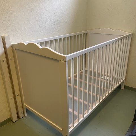 Selger en brukt sprinkelseng. Madrass kan medfølge om ønskelig, men den har litt flekker på seg (se bilde).