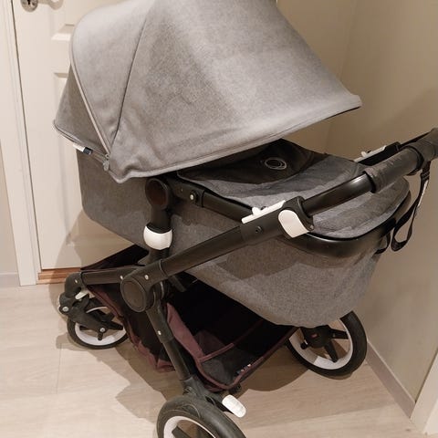 Bugaboo Fox 2 selges! Selv kjøpt den brukt. Forrige eier hadde kun brukt den til 1 barn. Jeg har selv kun brukt sportsdelen. I god stand, med normal bruksslitasje. God plass i handlekurven under. Solskjerm som kan trekkes helt ned. Ergonomisk sittedel. Sittedelen kan snus både fremover og bakover, enkel montasje. Det følger med originalt regntrekk. Fremhjulene kan låses, dersom man triller i ujevnt terreng. Ulåste hjul gir større bevegelighet, og passer perfekt på handletur mellom trange butikkhyller. Meget fornøyd med denne vognen! Nå er vogntiden over, og vognen selges derfor videre.