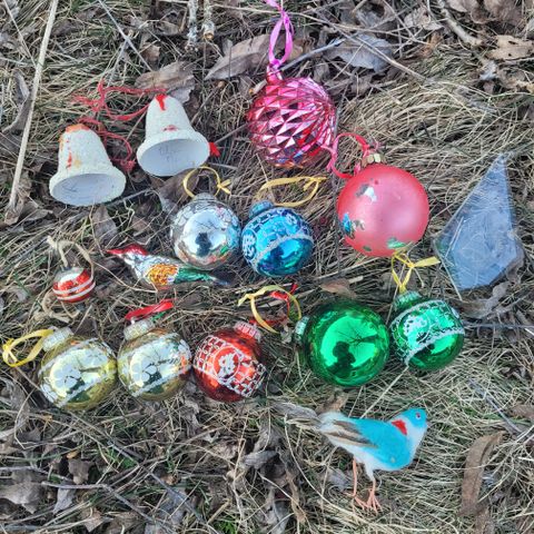 Selger antikke/retro/gamle/vintage julekuler som vi ikke bruker da vi har for mange. Kan deles opp og selges enkeltvis til 120 kr stk. Flott julepynt. Pris i annonsen er for alle og jeg oppdatere hvis noe blir solgt. Den ene er en klokke, ellers hele eller halve julekuler i litt forskjellige størrelser.
