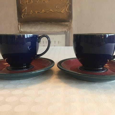 Har to krus fra Denby i Harlequin-serien. Uten bruksspor. Selges samlet. For stor for liten pakke med finn, men kan sendes med PostNord for kr 69.
