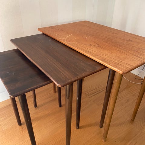 Selges rimelig og helst samlet og oppgir pris for dette. Om noen er på jakt etter kun én stol er prisen 750/stk for de som er 'hele', 650,- for den som er litt reparert.