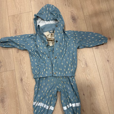 Veldig fin firer regndress fra Kuling med bukse og jakke i str 74/80(+ en bamse regnbukse i 86 med på kjøpet om man vil)