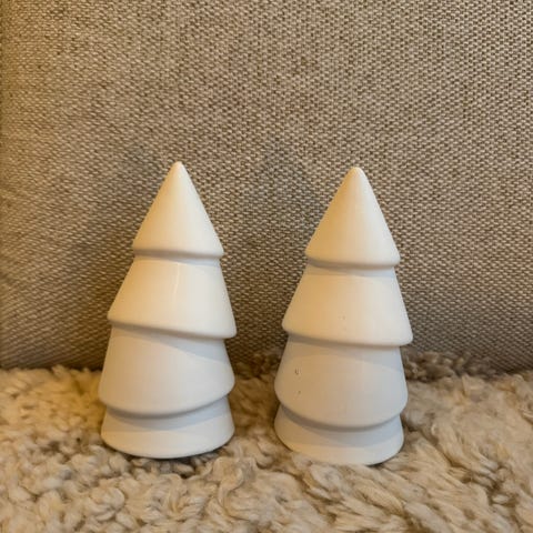 To hvite juletrær i nordisk stil til dekorasjon selges samlet