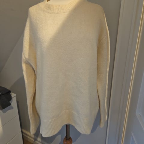 Ane Mone genser i størrelse XL, svart farge og laget av mohairull. Genseren har en blanding av 33% ull, 33% mohair, 31% polyamid og 3% elastan. Den har en myk og varm tekstur, egnet for kaldere vær. Helt ny med lappen på. Ny pris 1499kr.