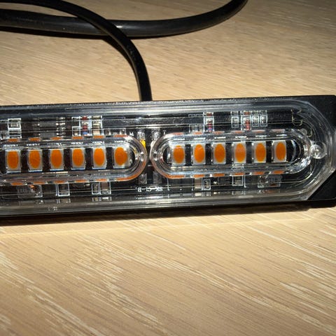Dette er en Federal Signal Beacon Ray roterende varsellampe, nærmere bestemt modell 173. Modellbetegnelse: Model 173 indikerer at lyset har en design med tre roterende lyspærer. Andre modeller, som 17, hadde to pærer, mens 174 hadde fire. Spenning: Lyset opererer på 12 volt, som angitt på skiltet. Lyset fungerer som det skal.