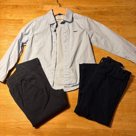 Pentøy str. 92. Bukse fra HM, skjorte fra HM, Name it og en ubrukt med lapp fra Hampton Republic