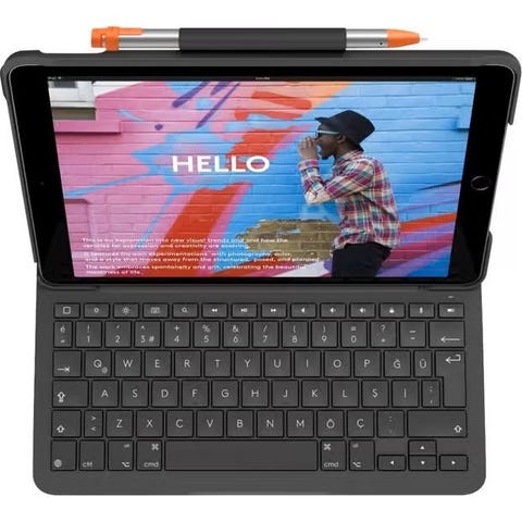 Fire brukermoduser for skriving, visning, lesing og tegning sørger for at du kan jobbe komfortabelt, uansett hvor du er. Det beskyttende tastaturet i full størrelse kobles til via Smart Connector, så du trenger ikke å tenke på sammenkobling eller lading. Det har også en full rad med iPadOS-snarveier og en sikker magnetlås til oppbevaring av Apple Pencil eller Logitech Crayon.