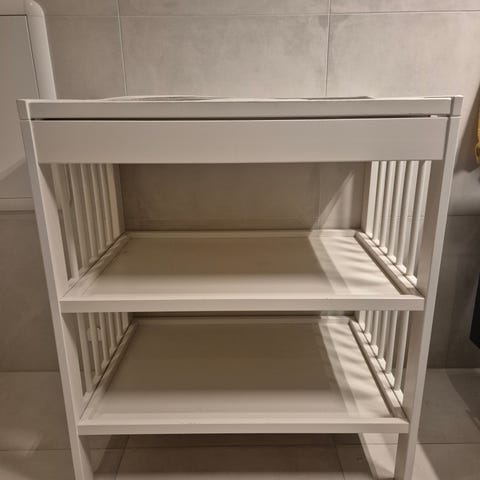 Et godt, pent brukt stellebord fra IKEA. Dette er en eldre versjon av Gulliver. Fordelen med dette stellebordet er at det har perfekt høyde for å stelle mini.