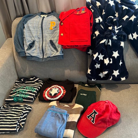 En hel garderobe til gutt fra 4 år selges samlet for 1.000,- Masse gensere, bukser, mye gode ullklær, t-skjorter, shortser. NB! Må hentes i Julebygda i Sandnes.