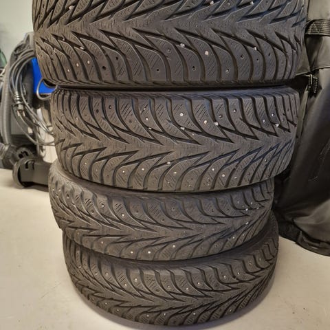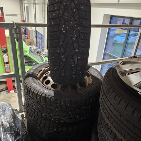 Greie Piggdekk på stålfelg type Nokian Nordman 5 suv fra 2015 str.215/65 R16 dekkene har gått i finnmark og stått på en chrysler grand voyager. Dekkene har vært lagret i en tørr garasje siste 6 år frem til i høst.