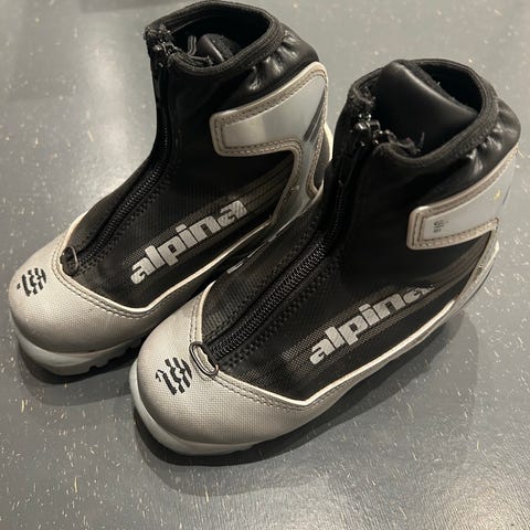 Pent brukte skisko i størrelse 29 (lilla, Frost) og størrelse 31 (Svart, Alpina) selges for 50kr per par. Må hentes i Sjetnemarka.