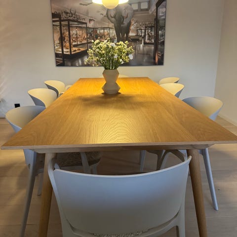 In Between bord SK6 fra &Tradition er et spisebord designet av Sami Kallio som forener enkel eleganse med solid håndverk. Bordets nøye uthulte proporsjoner og subtile detaljer gjør det både dekorativt og funksjonell ved middager eller daglige sammenkomster. Produsert med tradisjonelle teknikker gir det en varm og innbydende tilstedeværelse i spisestuen og passer godt sammen med stoler fra samme serie. Et tidløst valg for deg som ønsker et velbalansert bord som varer over tid