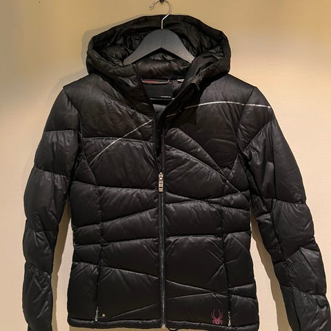 Peak Performance dunjakke, noen år gammel men mye jakke igjen i denne, veldig varm og god. Noen tegn etter bruk må påregnes men ingen hull eller store flekker ol. Passer til kalde dager og skikjøring. Mangler logoen på den som man tar ned glidelåsen men fullt brukbar likevel. #peak #peakperformance #dunjakke vinterjakke #slalomjakke #alpinjakke