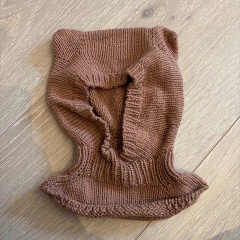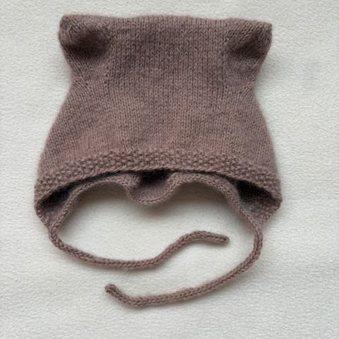 Ubrukt lillebjørnlue strikket etter oppskrift fra knitting for olive i garnet bamboo fra viking garn (50% bambus, 50% bomull).