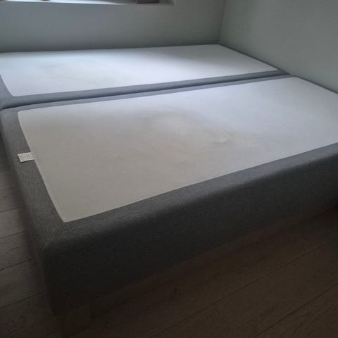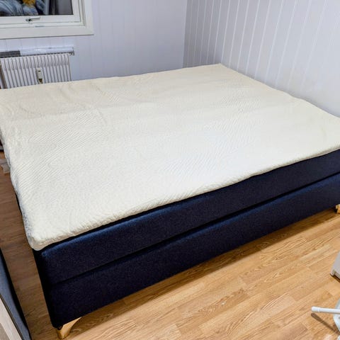 Overmadrassen har vært sendt til profesjonelt renseri før vi pakket den bort.