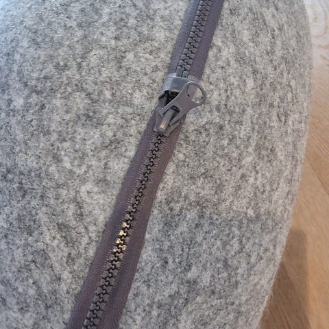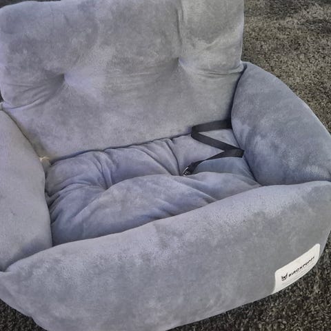 Grått kattehus i filt med glidelås. Kan deles i to (lokket). Nyvasket.