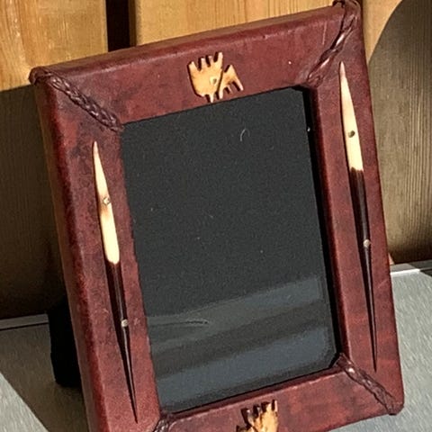 VINTAGE dobbel bilderamme i brunt skinn selges.