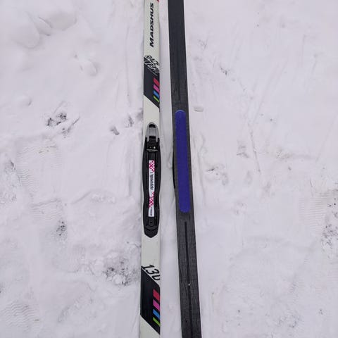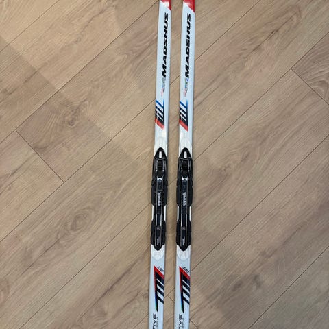 Smørefrie felleski fra Madshus på 120cm, kjøpt nye og brukt av 2 barn. Rottefella bindinger medfølger.