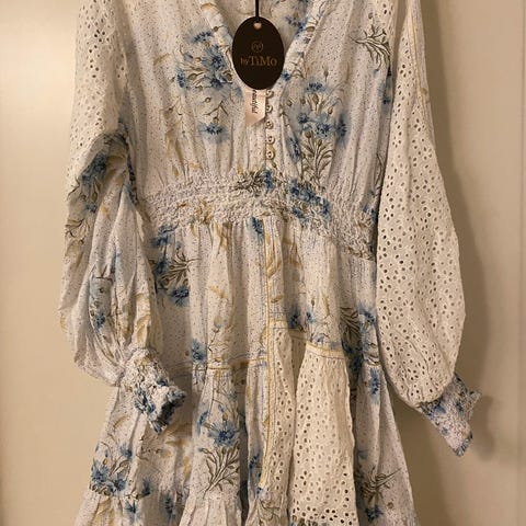 byTiMo Sommerkjole i bomull, størrelse S, hvit med blomsterprint. Brukt kun 1 gang- renset. Selger fordi den ikke brukes.