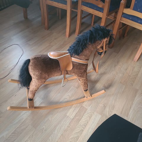 Fin, liten enhjørning som barnet kan gynge på. Fungerer også som en nydelig innredningsdetalj på barnerommet. Bruksmerker er lagt til på bilder. Kan hentes på kalstad