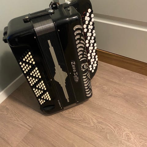 Zero Sette 26 C trekkspill i svart farge. Instrumentet har et tradisjonelt design med knapper og bånd. Passer for musikere som ønsker et klassisk trekkspill.