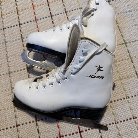 JOFA skøyter barn str 20 i hvit farge. Pent brukt, ny-slipt etter siste gangs bruk.