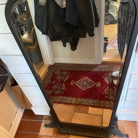 Bohus dekorasjonsramme speil med antikk utseende og detaljert dekor. Rammen har en mørk brun finish med slitasjeeffekter som gir et rustikt preg. Speilet kan brukes som veggdekorasjon i ulike rom.