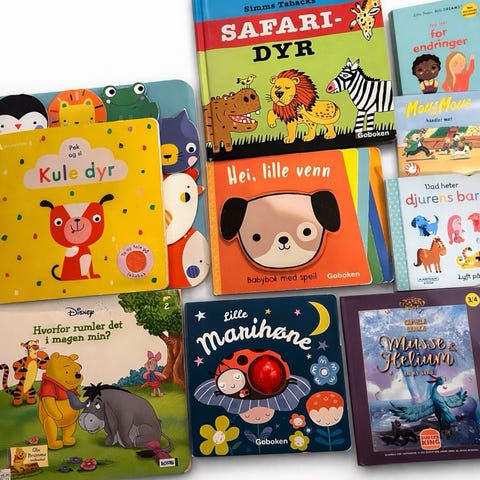 12 barnebøker, noen interaktive. (Piano man kan spille på). Selges samlet. Postmann Pat. En med enkel engelsk. Kan sende, men best om du henter. Fin stand, noen er så godt som nye.